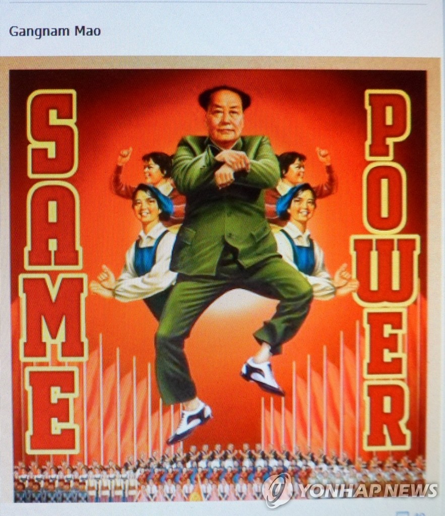紐西蘭的這幅高人氣平面廣告中,中國前國家主席毛澤東正學著“鳥叔”大跳起馬舞。廣告由紐西蘭電力零售公司Powershop製作,出現在社交網站臉書和奧克蘭、惠靈頓等城市的廣告牌上。韓聯社 2013-3-20