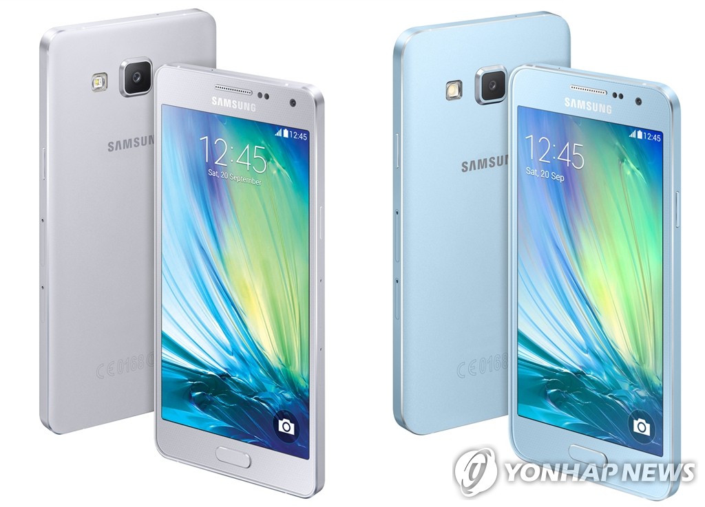 三星電子31日表示,將從下月開始在中國等部分國家陸續推出新款智慧手機Galaxy A5(左)和Galaxy A3。這兩款手機首次搭載500萬像素前攝像頭,迎合喜歡自拍的年輕用戶的口味。韓聯社/三星電子提供 2014-10-31