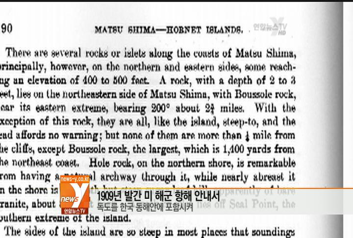 韓聯社亞特蘭大9月12日電 一名旅美歷史學家11日向韓聯社提供美國海軍海道測量局1909年發行的《亞洲航海》(Asiatic Pilot)指南。指南顯示,在大韓帝國末期(20世紀初)美國政府並未認為獨島是日本領土。 美國聯邦政府的正式文件——海軍海道測量局指南第5章以“南韓東海岸”為題目介紹鬱陵島和獨島的地理特點。 指南對鬱陵島和獨島的主權沒有記述,而以“對馬島屬於日本”(belong to Japan)的字句明確表示日本對對馬島擁有主權。 美國海軍發行指南的1909年,是日本政府在內閣會議上決定強制把獨島歸屬日本領土,並通過《桂太郎—塔夫脫秘約》從美國方面獲得對統治南韓的認可後經過4年的時候。 指南說,當時日本已經佔領南韓,入境南韓時必須事前獲得日本批准。可見美國政府對南韓的情況了解得很詳細。 儘管如此,美國政府在指南中並沒有標注日本對獨島擁有主權,是因為美國也明確認識到獨島是南韓固有領土。 一直以來,美國對獨島問題堅持中立態度,說這歸於南韓和日本兩國解決的問題。 這位歷史學家表示,美國資料顯示日本對獨島擁有主權的主張毫無根據,美方應轉變對獨島的立場。(完) (END)