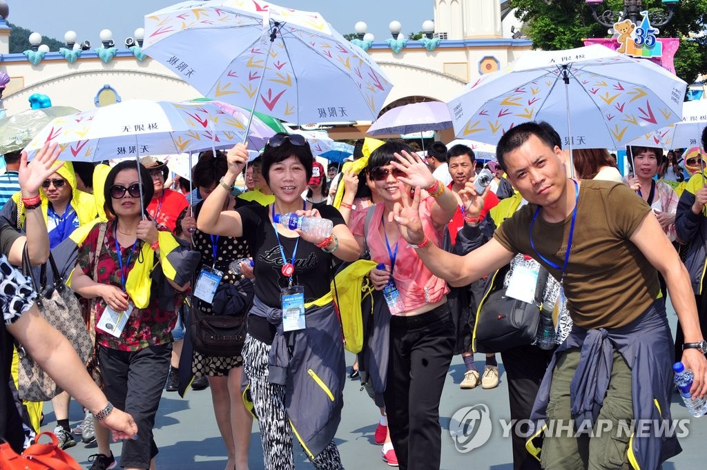 這是在南韓最大遊樂園——愛寶樂園遊玩的中國遊客揮手致意。30日,愛寶樂園方面介紹,針對應南韓觀光公社的邀請訪韓的中國旅遊考察團開展與眾不同的行銷和宣傳活動,努力吸引更多遊客來到愛寶樂園遊玩。考察團由來自中國大陸和港臺的共150余名新聞工作者組成,29日抵達南韓。韓聯社/愛寶樂園
