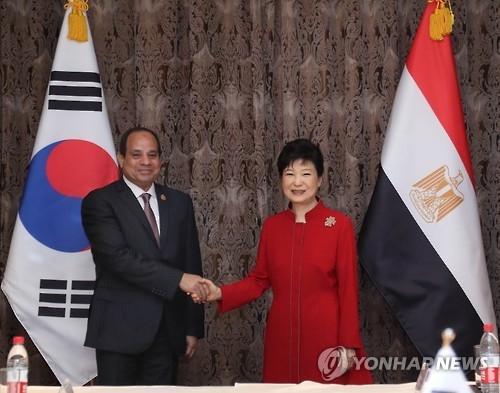 韓聯社杭州9月4日電 據南韓總統府青瓦臺4日消息,正在中國杭州出席二十國集團領導人峰會的總統樸槿惠4日與埃及總統塞西舉行會談,雙方商定夯實兩國經濟合作基礎。