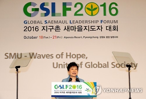 全球新村運動骨幹在韓開會 樸槿惠出席並致辭勉勵