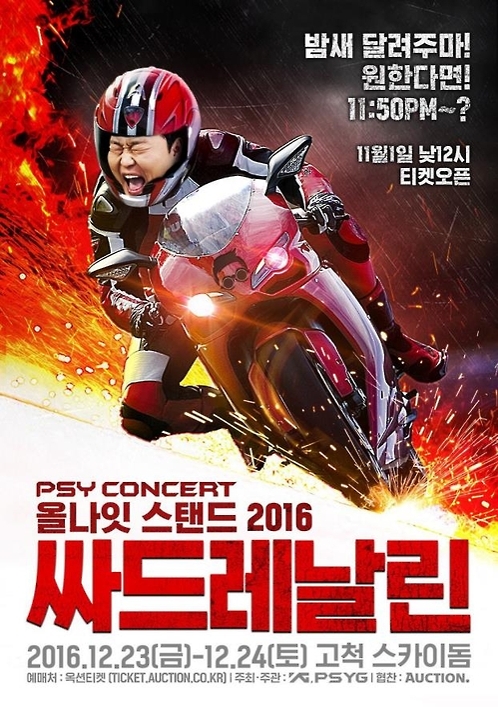 韓聯社首爾10月25日電 據南韓造星公司YG娛樂25日消息,旗下歌手鳥叔PSY將於12月23日晚11時50分在首爾高尺圓頂球場舉辦演唱會“All Night Stand 2016”。