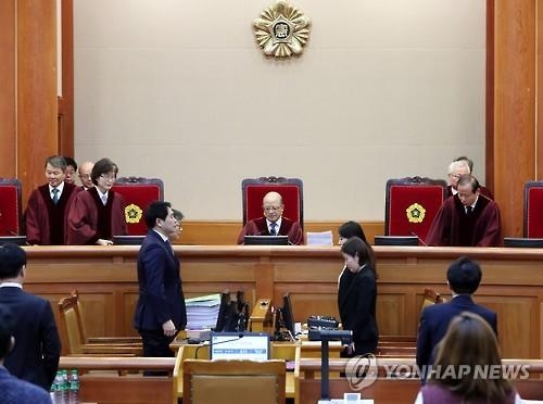 韓聯社首爾1月5日電 南韓憲法法院5日上午10時起進行總統樸槿惠彈劾案第二次法庭辯論。樸槿惠的辯護律師李中煥出庭辯論,全盤否認樸槿惠涉嫌受賄的指控。