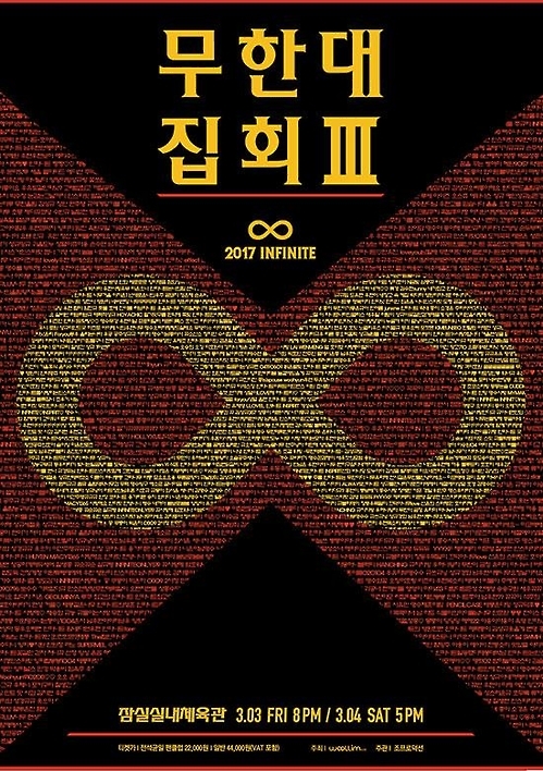 韓聯社首爾9月16日電 南韓經紀公司Woollim娛樂30日表示,旗下人氣男團INFINITE將於3月3-4日在首爾蠶室室內體育館舉辦大型粉絲見面會“無限大集會3”,與粉絲近距離接觸。