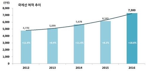 ÁúÁpªÀ¥@©v1¤ë30¤é¹q ¾Ú«nÁú°ê¤g¥æ³q³¡30¤é®ø®§¡A2016¦~°ê¤º¯èªÅ¤½¥q«È¹B¶q¹F1.0391»õ¤H¦¸¡A³Ð¤U¾ú¥v·s°ª¡C¯èªÅ³f¹B¶q¤]¹F¨ì¾ú¥v³Ì°ªÂI¡A¦P¤ñ¼W¥[7%¡A¬°407¸U¾·¡C