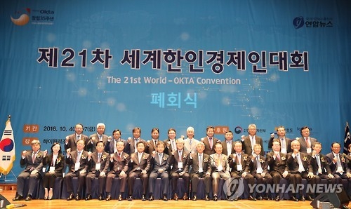 該活動旨在促進南韓中小企業進軍海外市場,幫助其開拓銷路。來自世界各國145個城市的510余名韓裔財經界人士參加了此次活動。