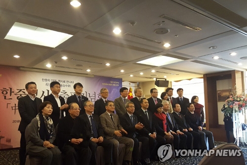 韓聯社首爾1月23日電(記者 張黎莉) 由韓中文化友好協會主辦的《中韓緣史》出版紀念會23日在首爾南韓新聞中心舉行。在韓中建交25週年和韓中文化友好協會創立15週年之際,韓中兩地歷史學家共同執筆編著《中韓緣史》,收錄韓中歷史上為兩地文化交流做出貢獻的21人,通過歷史人物故事,重新回顧兩地深厚的淵源。