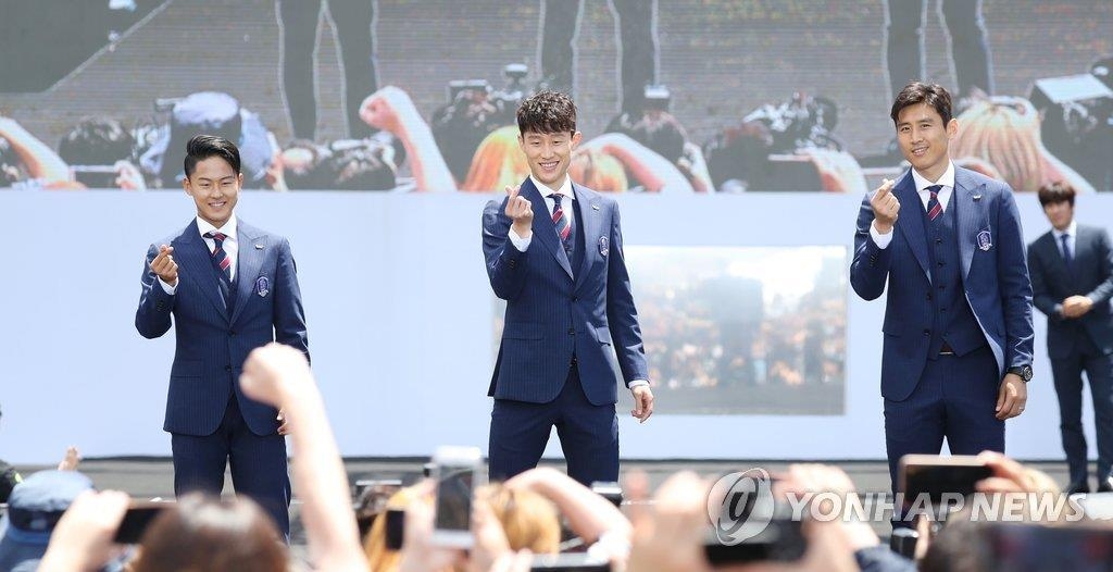 5月21日,在首爾廣場,由申臺龍率領的南韓男足舉行出征儀式,吸引大批球迷前來拍照。南韓隊將於5月28日和6月1日分別與宏都拉斯和波黑打熱身賽,隨後於6月3日飛往奧地利,在薩爾茨堡附近臨時安營。韓聯社