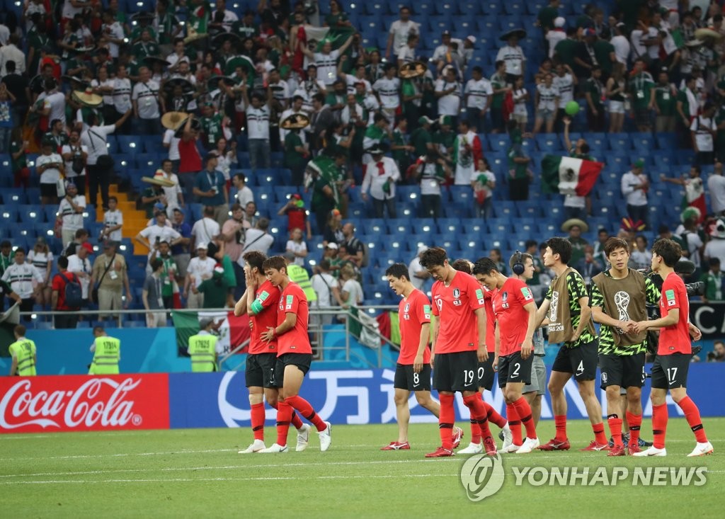 韓聯社下諾夫哥羅德6月24日電 南韓時間24日晚,2018世界盃F組第二輪,南韓隊在羅斯托夫競技場對陣墨西哥。輸掉首戰後,太極軍團此次大規模變陣試圖戰勝墨西哥,但最終以1-2告負。