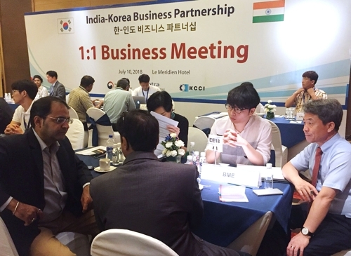 韓聯社首爾7月11日電 據大韓貿易投資振興公社(KOTRA)11日消息,“南韓-印度商務洽談會”當地時間10日在印度新德里舉行,南韓28家企業與印度、西南亞地區110余家企業相關負責人出席活動,進行一對一洽談交流。