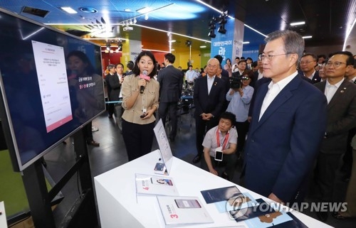 文在寅對創業者從純網路銀行獲得低息貸款和給留美子女簡便匯款的案例很感興趣。會後,文在寅來到一家純網路銀行展臺參觀快速開立賬戶展示過程。在聽說只用典租·月租合同、保證金、職場·收入資訊即可線上查詢貸款額度及利息和6分鐘內可以放款到賬後,文在寅驚嘆不已。