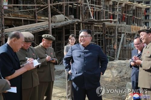 韓聯社首爾8月19日電 據朝中社19日報道,朝鮮國務委員會委員長金正恩時隔40天再次訪問北部的兩江道三池淵郡,對當地的施工現場進行現場指導。他在視察中指出,敵對勢力採取的制裁措施阻礙朝鮮發展。