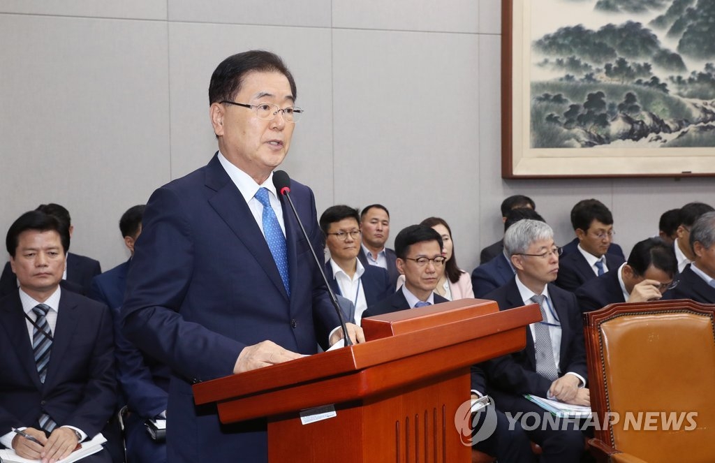 韓聯社首爾8月28日電 南韓青瓦臺國家安全室室長鄭義溶28日在國會運營委員會全體會議上表示,南韓政府將積極發揮主導作用,促進韓朝和朝美關係良性發展。