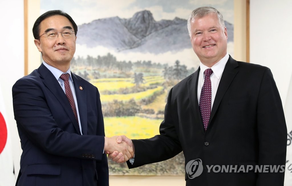 韓聯社首爾9月11日電 南韓統一部長官(部長)趙明均11日在首爾會見到訪的美國國務院朝鮮政策特別代表斯蒂芬·比根。