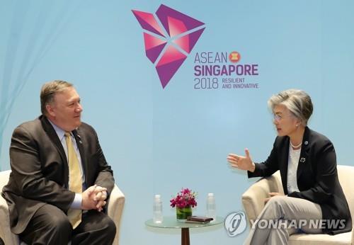 康京和向美方詳細介紹了韓朝為本次首腦會談付出的努力和開展的對話,雙方還就韓朝如何討論落實《板門店宣言》和實現和平等各種議題交換意見。蓬佩奧感謝韓方說明情況並表示,希望韓美今後在韓半島無核化、構建和平機制方面繼續努力,進行更加緊密的溝通。