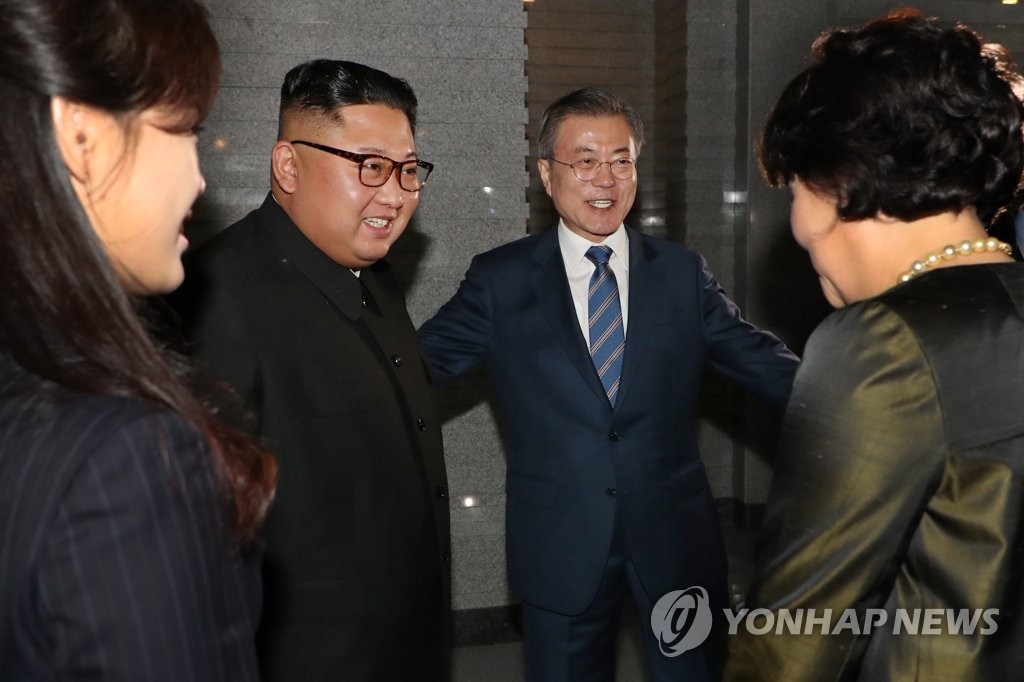 韓聯社平壤、首爾9月20日電 南韓總統文在寅夫婦和朝鮮國務委員會委員長金正恩夫婦19日在平壤大同江水產品餐館共進晚餐。