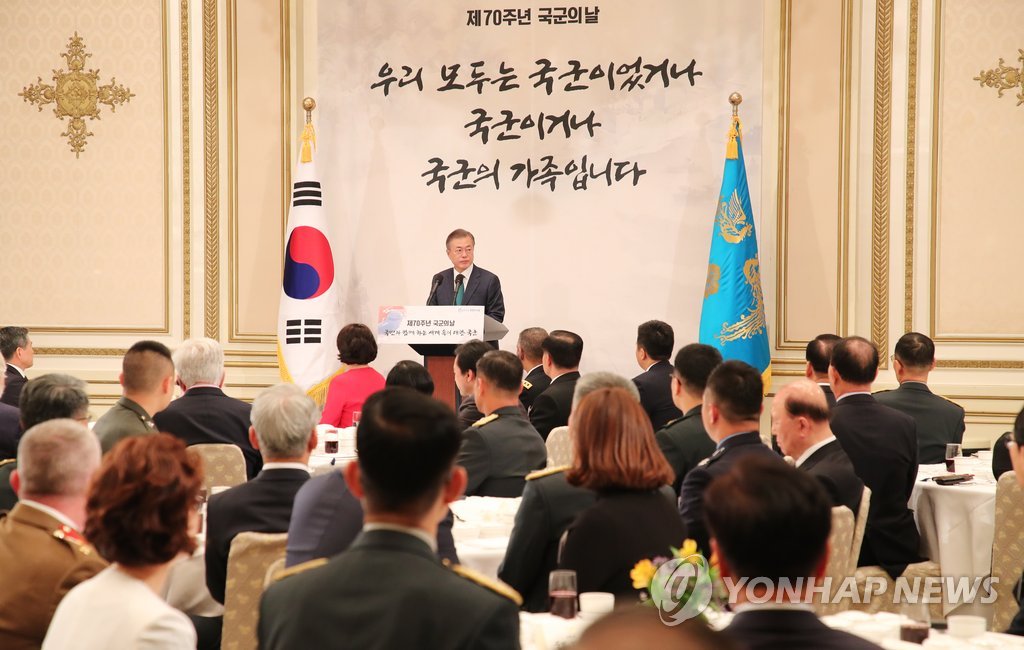 文在寅當天在青瓦臺主持建軍70週年午宴時表示,南韓已經大膽開啟走向韓半島持久和平與繁榮的旅程。這也是南韓總統首次在青瓦臺主持韓軍官兵、聯合國軍參戰老兵、撫恤團體遺屬會代表出席的宴會。