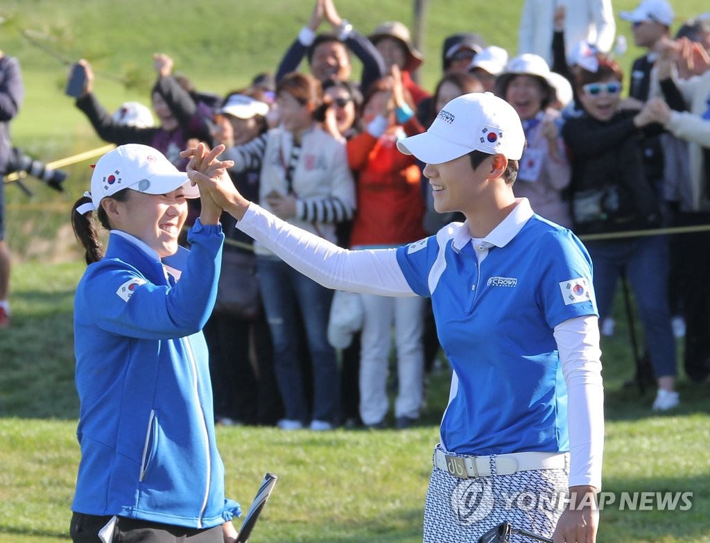 韓聯社仁川10月7日電 女子高爾夫球國家對抗賽——2018賽季高爾夫球LPGA巡迴賽事UL國際皇冠杯的最後一天比賽7日在南韓仁川的傑克·尼克勞斯高爾夫俱樂部舉行,南韓隊首次奪得冠軍。
