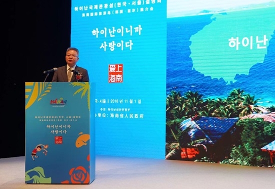海南省長沈曉明在致辭中表示,海南與南韓在旅遊、文化等各領域長期保持密切交流與合作,南韓目前是海南第二大入境客源國。旅遊作為海南全面深化改革開放的重頭戲,氣候、空氣、風光、文化等元素是海南發展旅遊的優勢,吸引著世界各地的遊客來此度假。希望通過此次推介會,讓更多南韓遊客來海南旅遊,了解海南、愛上海南;也歡迎南韓企業到海南投資,共同創造兩地發展的美好明天。