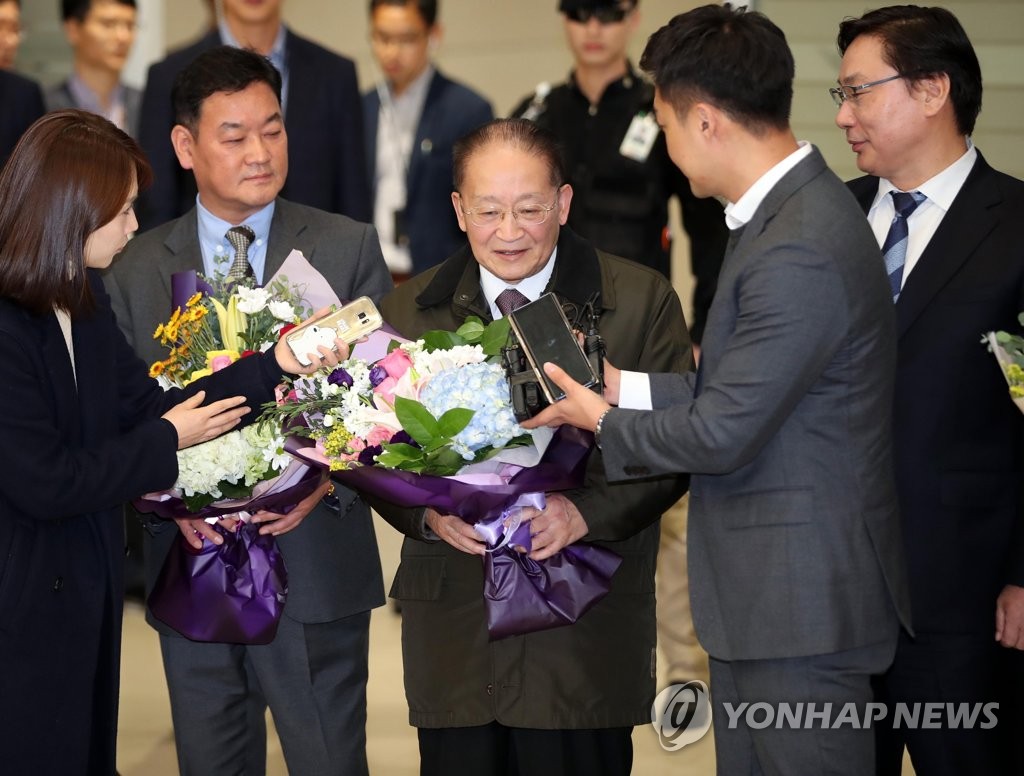 李種革現身入境大廳時表情愉快,接過大會主辦方的歡迎花束後笑容滿面。他與同行的朝方人士站成一排,接受媒體拍照。40多名記者到場採訪,警方和主辦方投入數十人維持秩序。