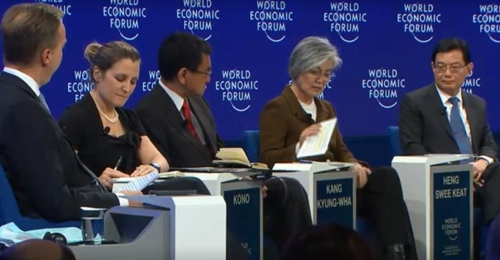 康京和當天在達沃斯論壇總裁布倫德主持的一場會議上作出上述表述。她說,韓半島是連接大陸與海洋的紐帶,受冷戰影響70年來其未能發揮原有作用,如今我們要努力改變現狀,使其發揮應有作用。