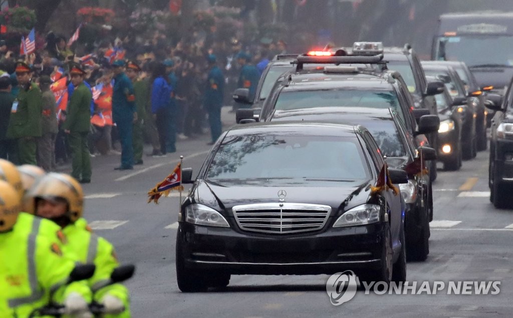 韓聯社河內2月26日電 朝鮮國務委員會委員長金正恩26日上午11時乘專車抵達即將下榻的越南河內美利亞酒店(Melia Hanoi Hotel)。他將於27日晚同美國總統特朗普共進晚餐,正式開啟為期兩天的朝美首腦會談。