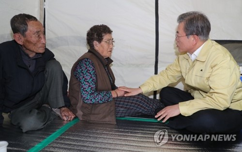 韓聯社首爾4月5日電 南韓總統文在寅5日前往江原道山火災區看望災民。 當天下午3點41分,文在寅在設置於江原道高城郡土城面居民中心的對策本部聽取了滅火工作的彙報,之後到附近災民臨時安置點看望災民。(完) 文在寅(右)看望災民。(韓聯社) tanaka123@yna.co.kr 【版權歸韓聯社所有,未經授權嚴禁轉載複製】 【版權歸韓聯社所有,未經授權嚴禁轉載複製和用於人工智慧開發及利用】 相關新聞 文在寅指示研究將山火地區指定為特別災區 文在寅指示盡全力保護國民安全
