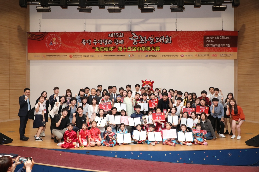 韓聯社首爾5月28日電(記者崔美花) 以“中國建國70週年——中國的過去、現在和未來”為主題的“龍慶峽杯”第十五屆中華緣大賽25日在南韓國會議員會館舉行。