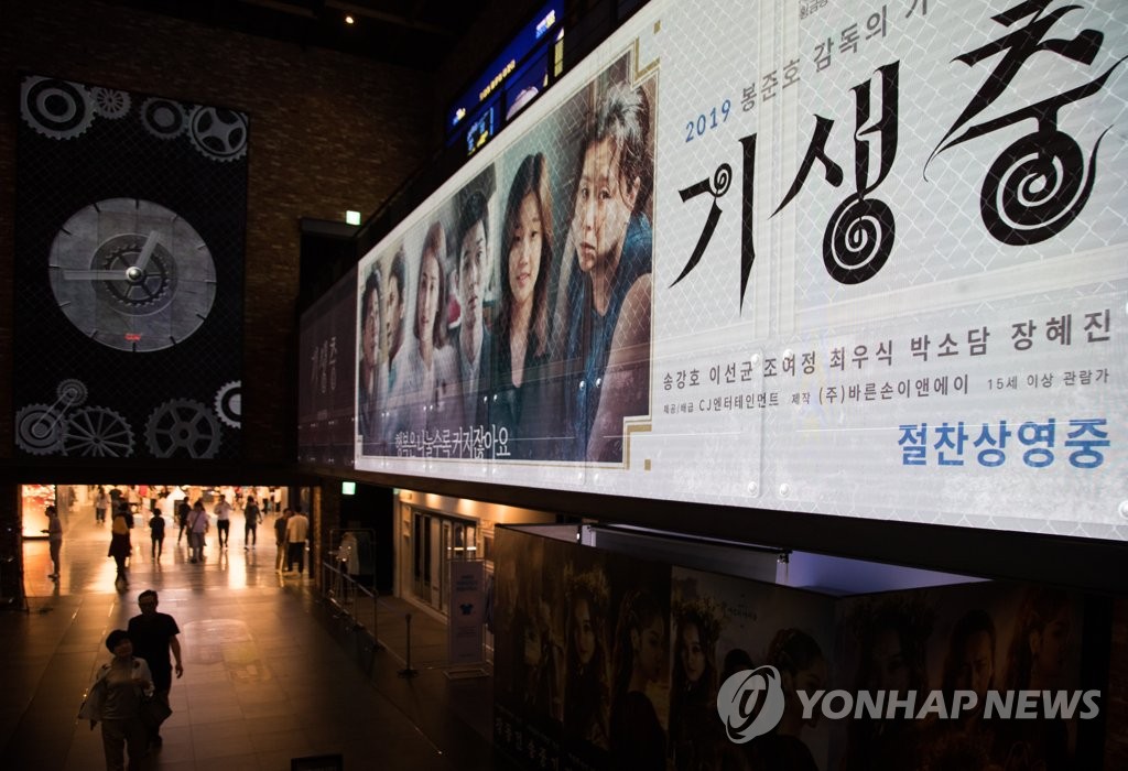 韓聯社首爾6月10日電 據南韓電影振興委員會10日發佈的數據,本土片《寄生蟲》上週末吸引114.6566萬人次觀影,領跑週末票房,累計觀影人數達702.1555萬人次。
