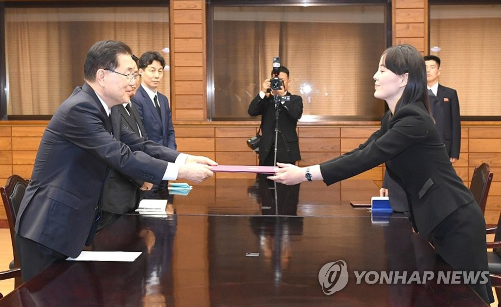 當天下午5點,鄭義溶與統一部次官(副部長)徐虎、作為治喪委員會代表的金大中和平中心副理事長樸智元議員在板門店朝方一側的“統一閣”與金與正見面,收下唁電和花圈。雙方見面15分鐘。