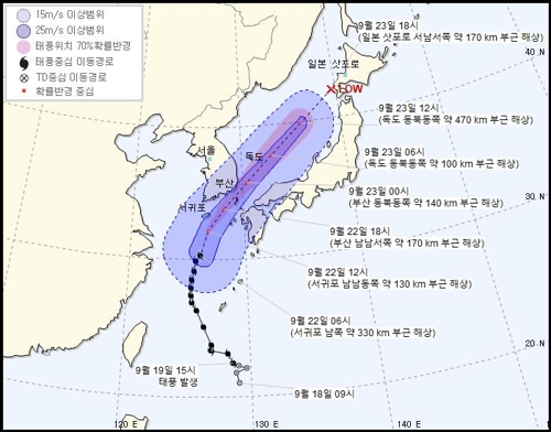 截至當天上午7時30分,濟州道和南部地區發佈颱風預警,多數海面發佈風浪預警或颱風預警。