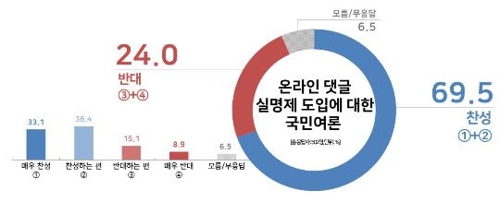 韓聯社首爾10月16日電 南韓民調機構Realmeter于16日發佈的一項民調結果顯示,近七成南韓人贊成實施網路留言實名制。