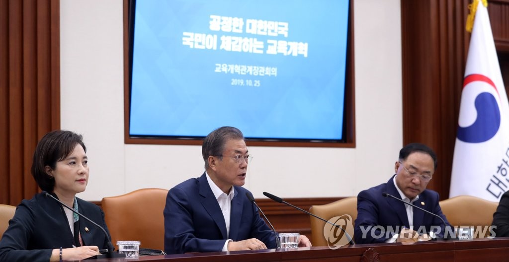 韓聯社首爾10月25日電 南韓社會副總理兼教育部長官俞銀惠25日舉行記者會,發佈總統文在寅主持召開的教育改革會議的內容。