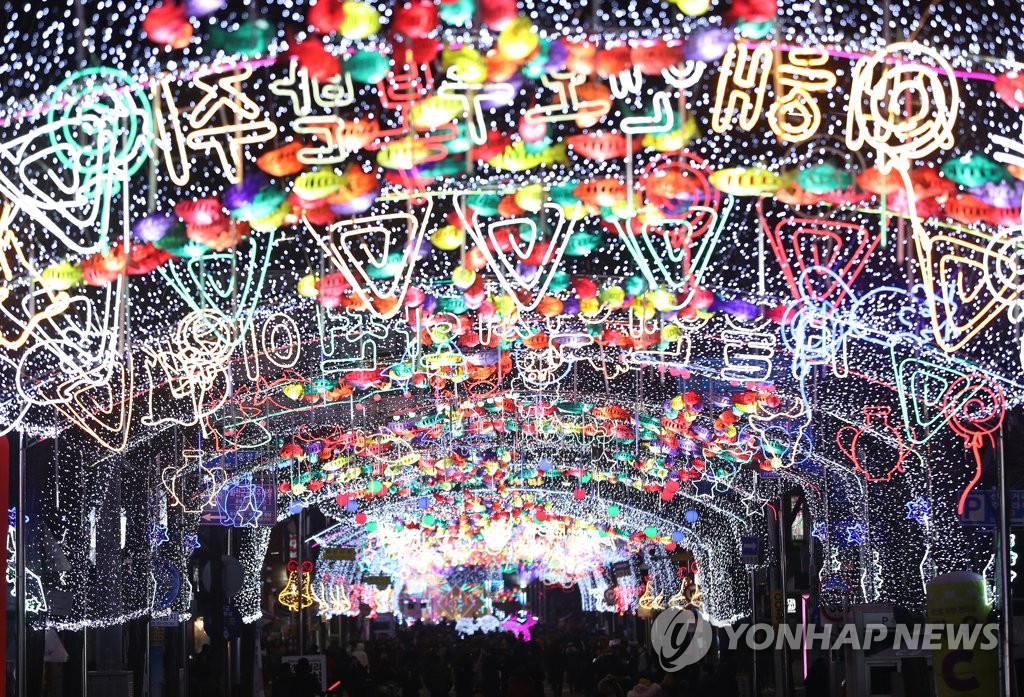 韓聯社華川12月24日電 南韓華川山鱒魚慶典將於1月4日開幕,21日下午,江原華川郡華川邑市中心大街舉行點燈活動,兩萬五千盞燈照亮街道熠熠生輝,為本屆活動預熱。