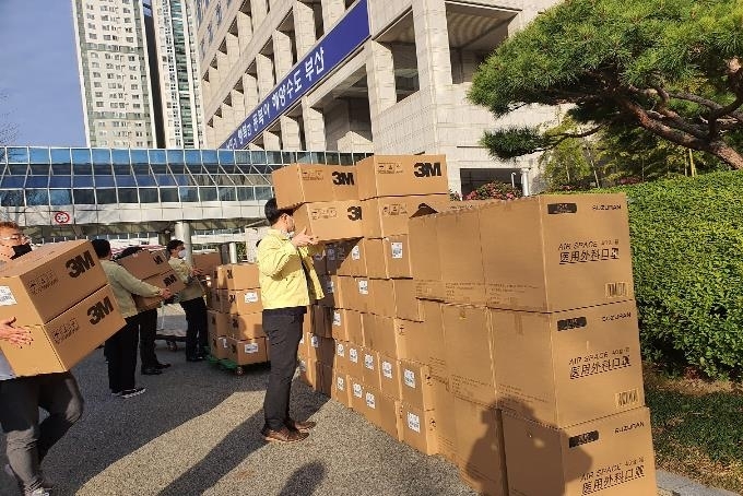 上海市政府向釜山捐贈的口罩 釜山市政府供圖(圖片嚴禁轉載複製)