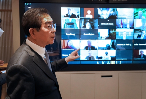 韓聯社首爾3月29日電 首爾市政府29日表示,首爾市市長樸元淳27日晚11點15分至28日0點25分與31個國家45座城市市長舉行共同應對新冠(COVID-19)疫情視頻會議,介紹首爾防疫經驗和具體措施。