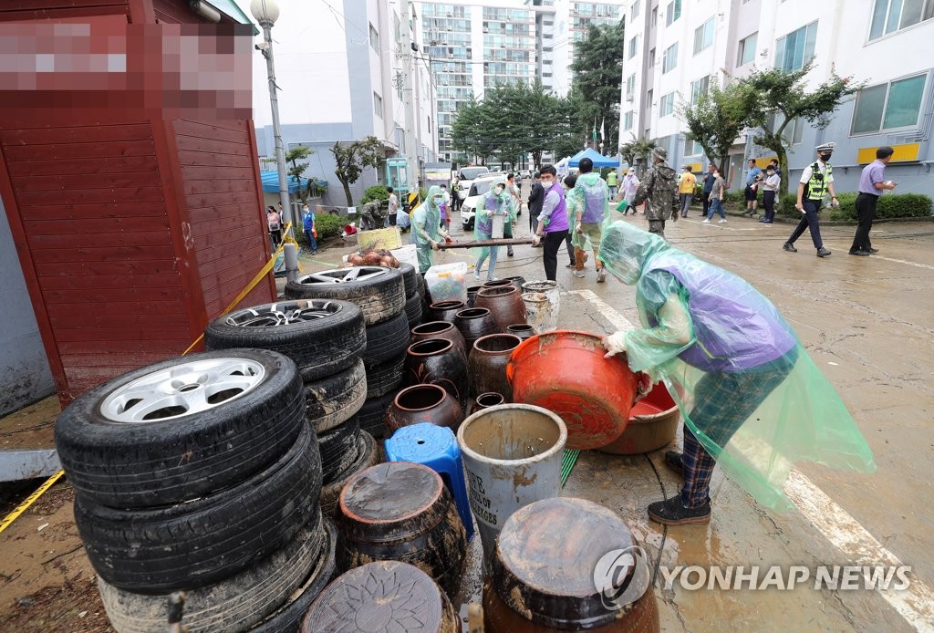 相反,忠清南道洪城郡和瑞山市等地響起暴雨預警。大田市昨日時隔20年遭遇暴雨重創,某公寓1樓因暴雨積水,公寓周邊一帶受災嚴重。全羅北道同樣受災嚴重,農田浸水、路面塌陷、公寓積水,甚至還有房屋被泥石流沖毀。