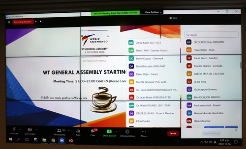 這是世界跆拳道聯盟于1973年成立後第一次以視頻連線方式舉行大會,133個成員國協會和29名執行委員與會。大會決定,出於新冠疫情的考慮,2020世界跆拳道品勢錦標賽將改為線上舉行。世跆聯主席趙正源還介紹,前一日與國際奧會(IOC)主席托馬斯·巴赫等人討論了從簡舉辦東京奧運會、保護參賽運動員安全等方案。
