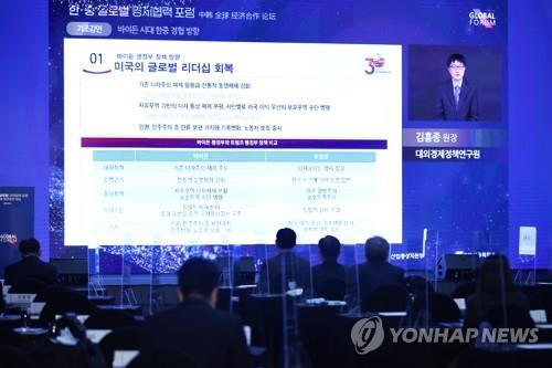 南韓對外經濟政策研究院院長金興種以“拜登時代韓中經濟合作方向”為主題發表演講,預測拜登政府也將對中國採取強硬措施。他指出,在瞬息萬變的經貿環境中,南韓需要共同推進數字貿易和非接觸產業發展,應對氣候變化,在綠色產業和新產業開展合作。