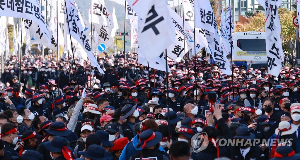 韓聯社首爾11月25日電 據南韓勞動界25日消息,貨運工會“南韓貨物連帶本部”(以下簡稱貨物連帶)當天零時起進入大罷工,為期三天。