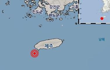 當天下午5時19分16秒,濟州西歸浦市西南偏西方向41公里海域發生4.9級地震,震中位於北緯33.15度、東經126.24度,推測震源深度17千米。(完)