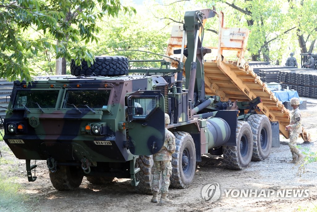 資料圖片:8月26日,在慶尚北道慶山市一帶,韓美兩軍在“乙支自由護盾”(UFS)聯合軍演上進行橋梁架設演練。圖為南韓陸軍第二作戰司令部麾下第1117工兵團官兵與韓美聯合師麾下美軍第11工兵大隊官兵一起架橋。 韓聯社