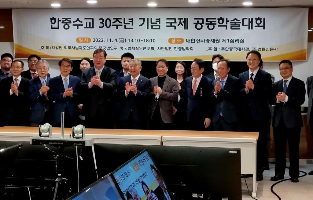 韓聯社首爾11月4日電(記者全寅慶) 南韓司法研究機構4日邀請韓中多位法律界專家舉辦學術大會,紀念兩國建交30週年。與會專家就電信詐騙犯罪、財產繼承制度、大數據金融、元宇宙等多個話題發表演講,並進行討論交流。