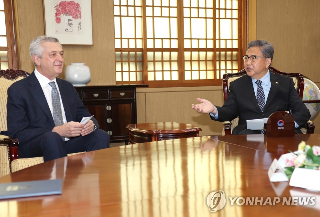 樸振當天上午會見聯合國難民事務高級專員菲利波·格蘭迪時表示,在全球範圍的難民危機加劇之際,難民署的作用變得極其重要。樸振祝賀格蘭迪任期延長,並對難民署哀悼梨泰院踩踏事故遇難者表示感謝。