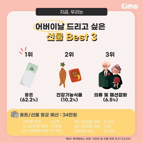 韓聯社首爾5月6日電 據南韓大數據諮詢公司樂天會員(LOTTE Members)近日發佈的調查結果,每10名南韓人中有6人計劃在父母節(5月8日)送給父母現金或購物劵。