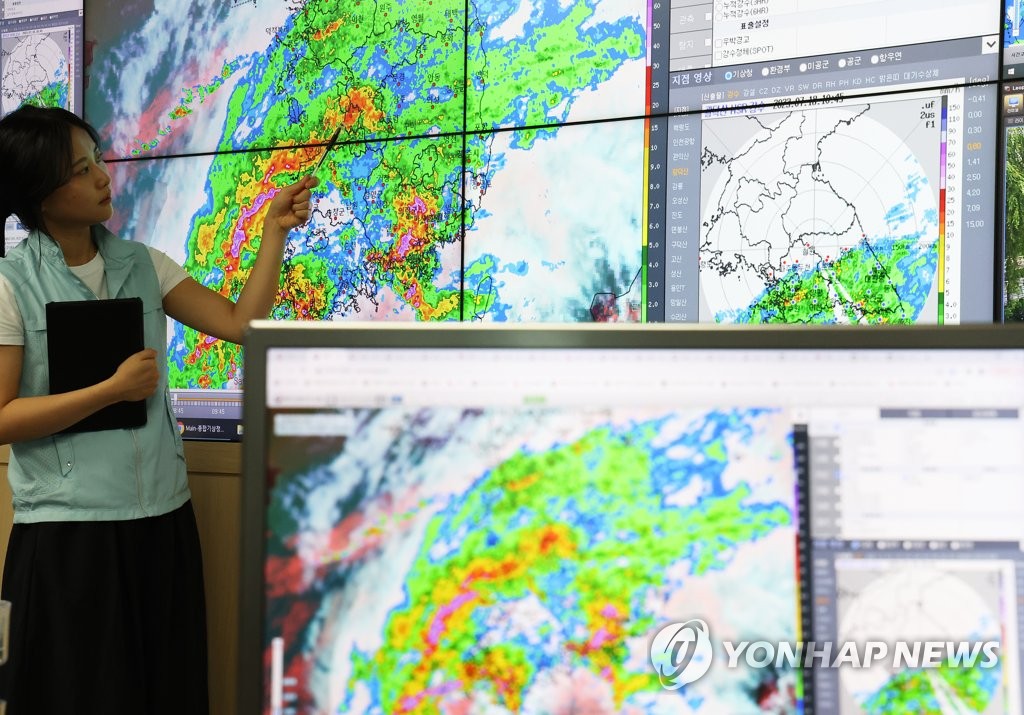 赤道的暖濕氣流從北太平洋高壓和今天登陸中國南部的第4號颱風之間的夾縫涌向南韓,與自北南下的幹冷氣流相撞形成靜止鋒。此外,中國上海方面的低氣壓接近南韓,對暖濕氣流北上南韓起到推波助瀾的作用。