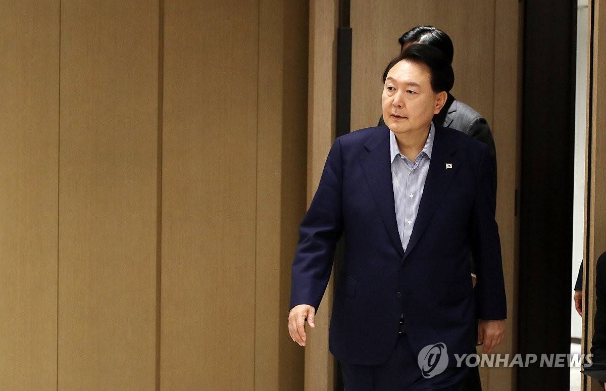 8月31日,在首爾龍山總統府,尹錫悅準備主持召開緊急經濟民生會議。 韓聯社/總統室通訊攝影記者團