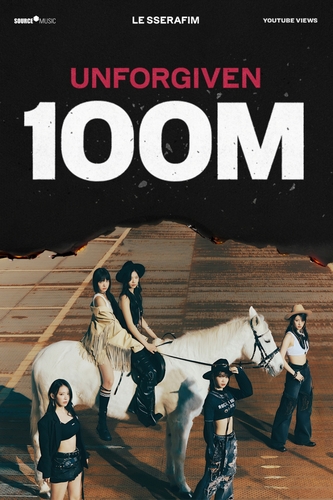 韓聯社首爾9月20日電 女團LE SSERAFIM的熱曲《UNFORGIVEN》MV的優兔(YouTube)播放量于19日晚間7點55分許突破1億次。
