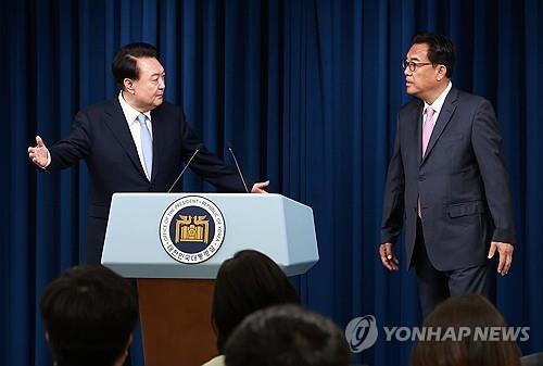 尹錫悅近期任命國民力量議員鄭鎮碩為總統秘書室室長(幕僚長),任命國民力量前議員洪哲鎬為政務首席秘書,當天任命前市民溝通秘書田光三為市民社會首秘。